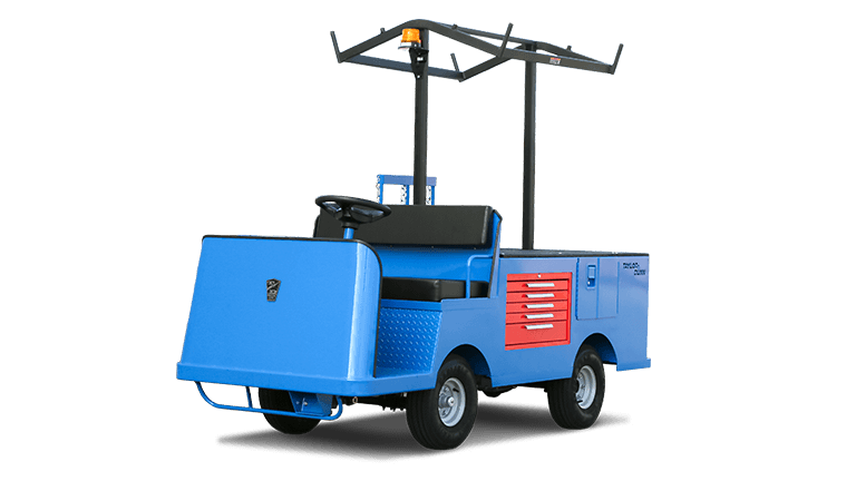 This is the Taylor-Dunn MX-1600 Utility Vehicle. It is a 36 volt electric vehicle with a speed of up to 12 mph and a range of up to 20 miles. It has a load capacity of 1,000 pounds and a tow capacity of 7,500 pounds. It is a two person capacity vehicle.