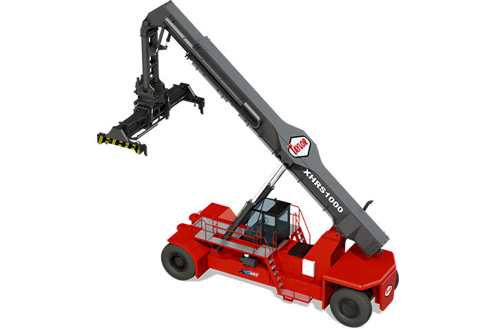 The TAYLOR XHRS-1000 is a 57k-92k lbs / 25855-41730 kg capacity truck with a load center of 360.0 in. / 9144 mm. It is powered by a Volvo TAD1372VE 428 (Turbocharged) engine and a Dana TE-30 Powershift transmission. The mast is a Telescopic Boom and the carriage attachment is a 20-40 ISO/WTP Container Handling Attachment. The forks are 21.00 X 35-42 PR. The brake type is hydraulic and the volts are 24.