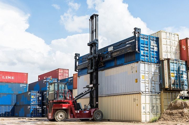 - 45′ ULTRA-VU Telescopic Mast for stacking 5 high 9’6″ empty containers and 6 high 8’6″ empty containers