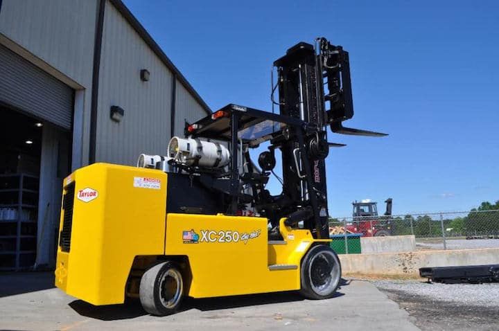 The Taylor XC-250ML Forklift is a versatile and reliable machine that is perfect for any business. With a GM 5.7L-125HP LPG engine, this forklift is powerful and efficient. The dry type air cleaner with safety element and restriction indicator keeps the operator safe and the machine running smoothly. The hydrostatic power steering and oil cooled wet disc brakes make this forklift easy to operate and maintain.