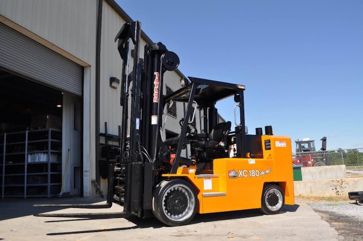 The Taylor XC-180S is a basic truck that includes a GM LPG5.7-125 engine and a TC-20 3-sp. APC transmission. It has a capacity of 18000 lbs / 8165 kg and a load center of 24 in. / 610 mm.