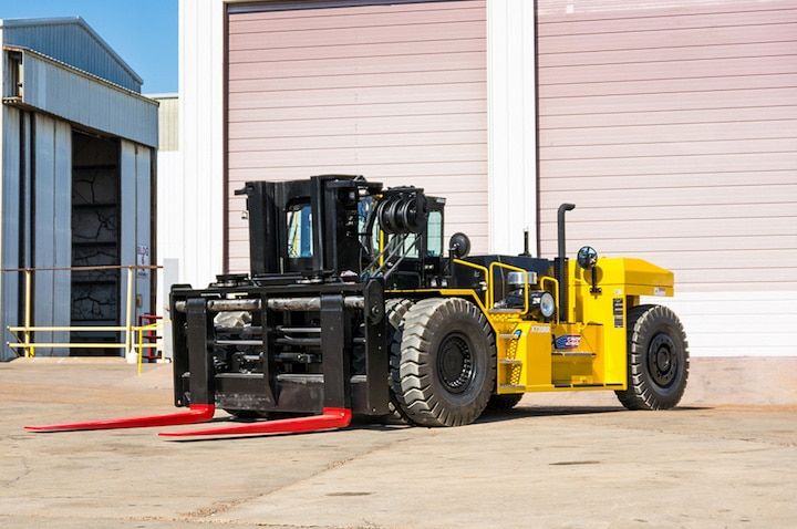 The TAYLOR X-620RR RO-RO FORKLIFT is a reliable and durable piece of machinery that is perfect for any business or industry. With features like a 10-ft. Direct Lift 2-Stage Mast, a Cummins QSL9 250Hp Tier-4 Final diesel Engine, and a Dana TC-36 4-Speed powershift Transmission, the TAYLOR X-620RR RO-RO FORKLIFT is sure to get the job done efficiently and effectively.