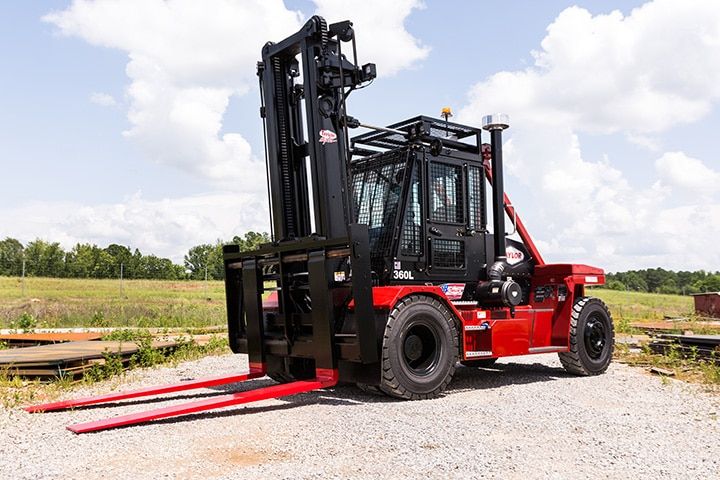 The X-360L Heavy Duty Forklift from Taylor is a top-of-the-line option for those in need of a reliable and powerful machine. With features like an 11-ft ULTRA-VU 2-Stage Mast, Dana TE-14 4-speed powershift transmission, and Powertrain Protection System, this forklift is sure to get the job done.