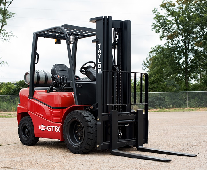 The Taylor GT-60 forklift is a versatile and reliable piece of machinery. With a capacity of 6000 lbs and a wheelbase of 66.9 in., it is perfect for a variety of applications. Additionally, the GT-60 features a 2.4K HMC Theta LPG engine, an automatic powershift transmission, and hydraulic brakes.