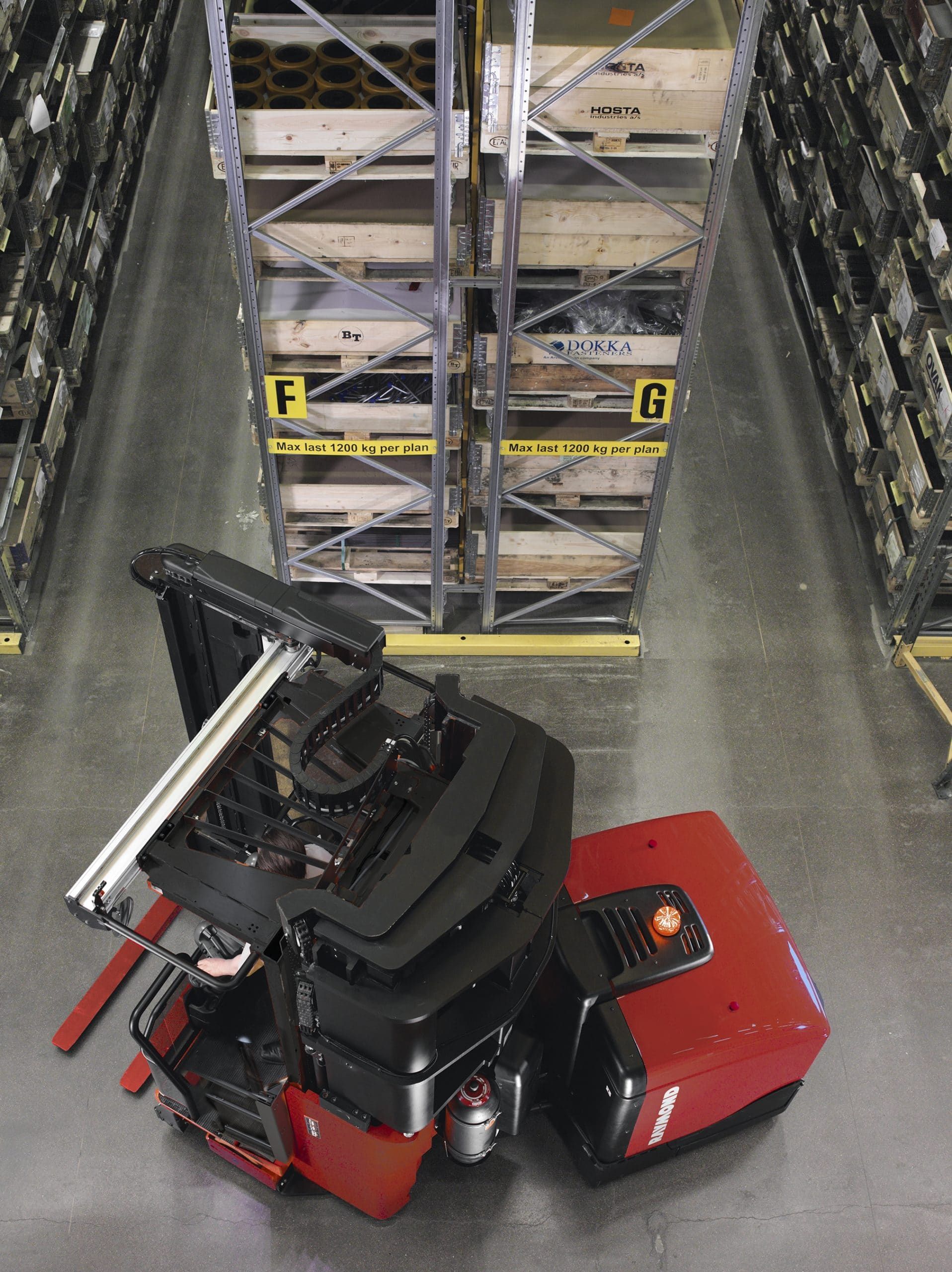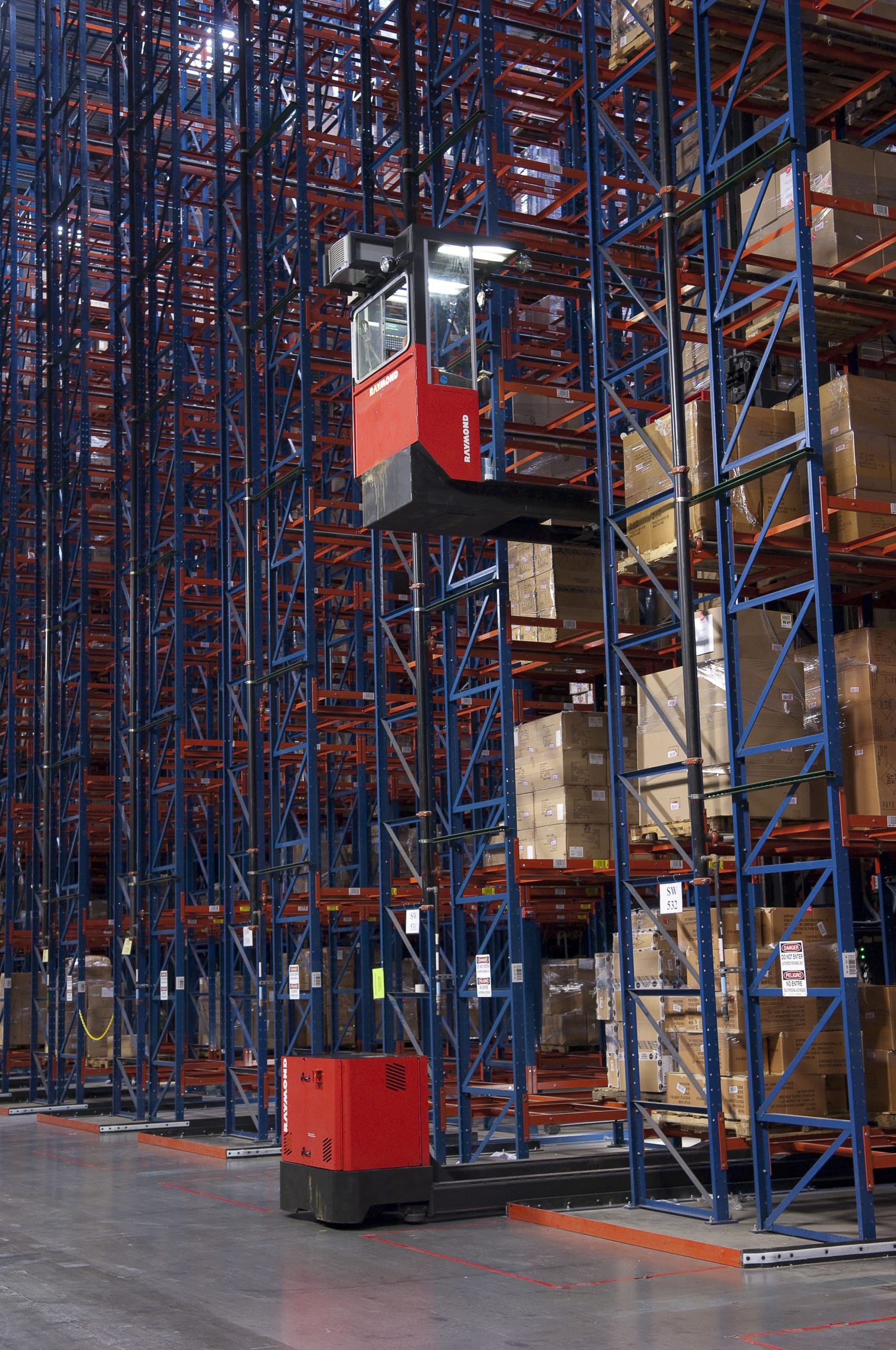 Cold Storage Refrigerated warehouses, blast freezers, and other cold storage applications require robust control systems. Raymond maintains its own cold storage test facility to replicate the harshest conditions; testing and proving our systems in extreme cycles of freezing and thawing. Order Picking Boost throughput and pick rates with reliable, high performance Raymond Transtacker trucks. Lifting greater capacities to higher heights means greater order picking productivity for your operators. And, we can customize our vast selection of swing-reach trucks, including lift heights and performance packages to meet very narrow aisle needs and order picking requirements. Very Narrow Aisle With over 200 combinations of heights, features and capacities, Raymond’s family of very narrow aisle forklifts and swing reach trucks offer superior versatility and effective solutions, each improving the utilization of your warehouse space.Optional Additional Features: