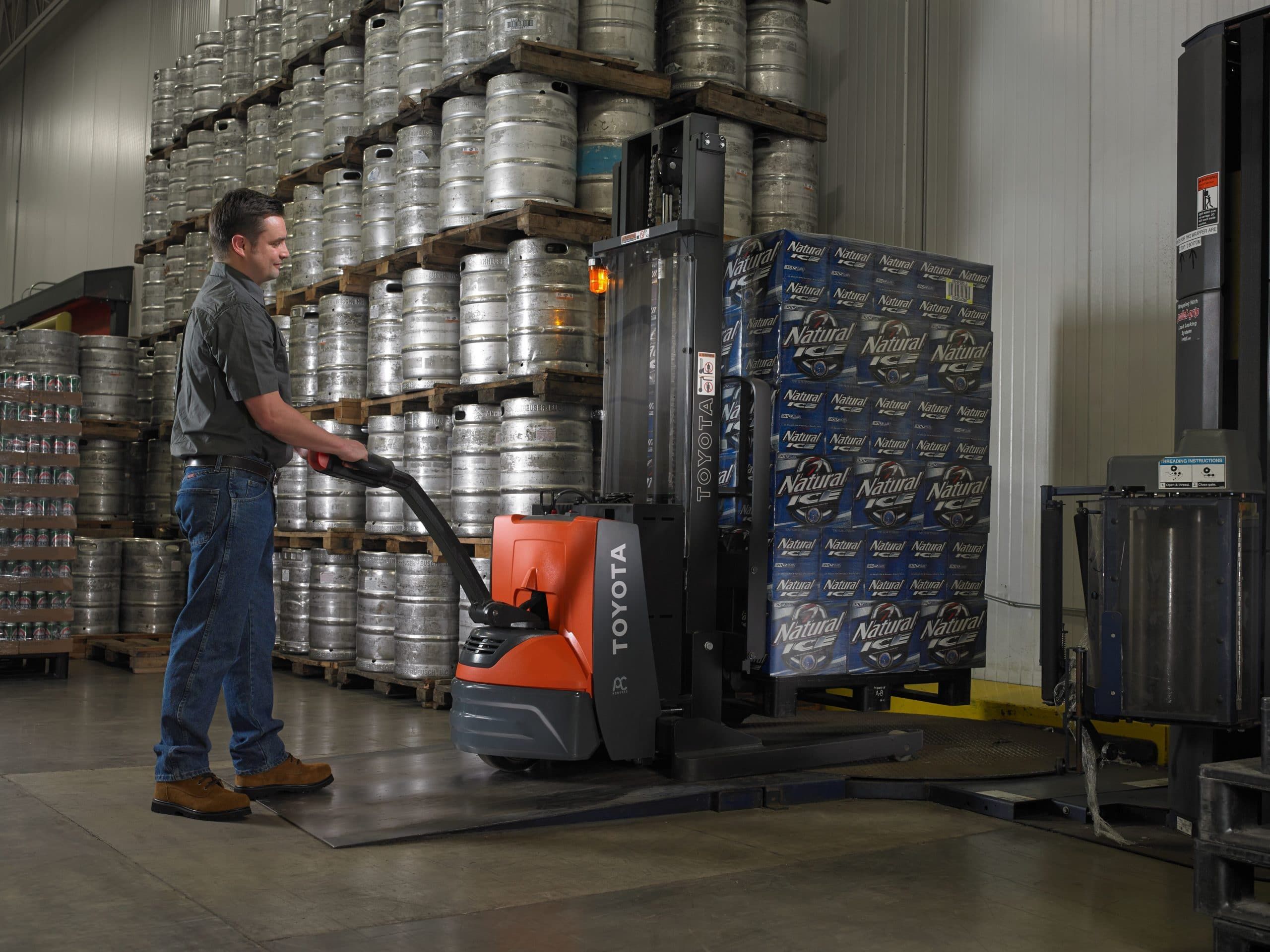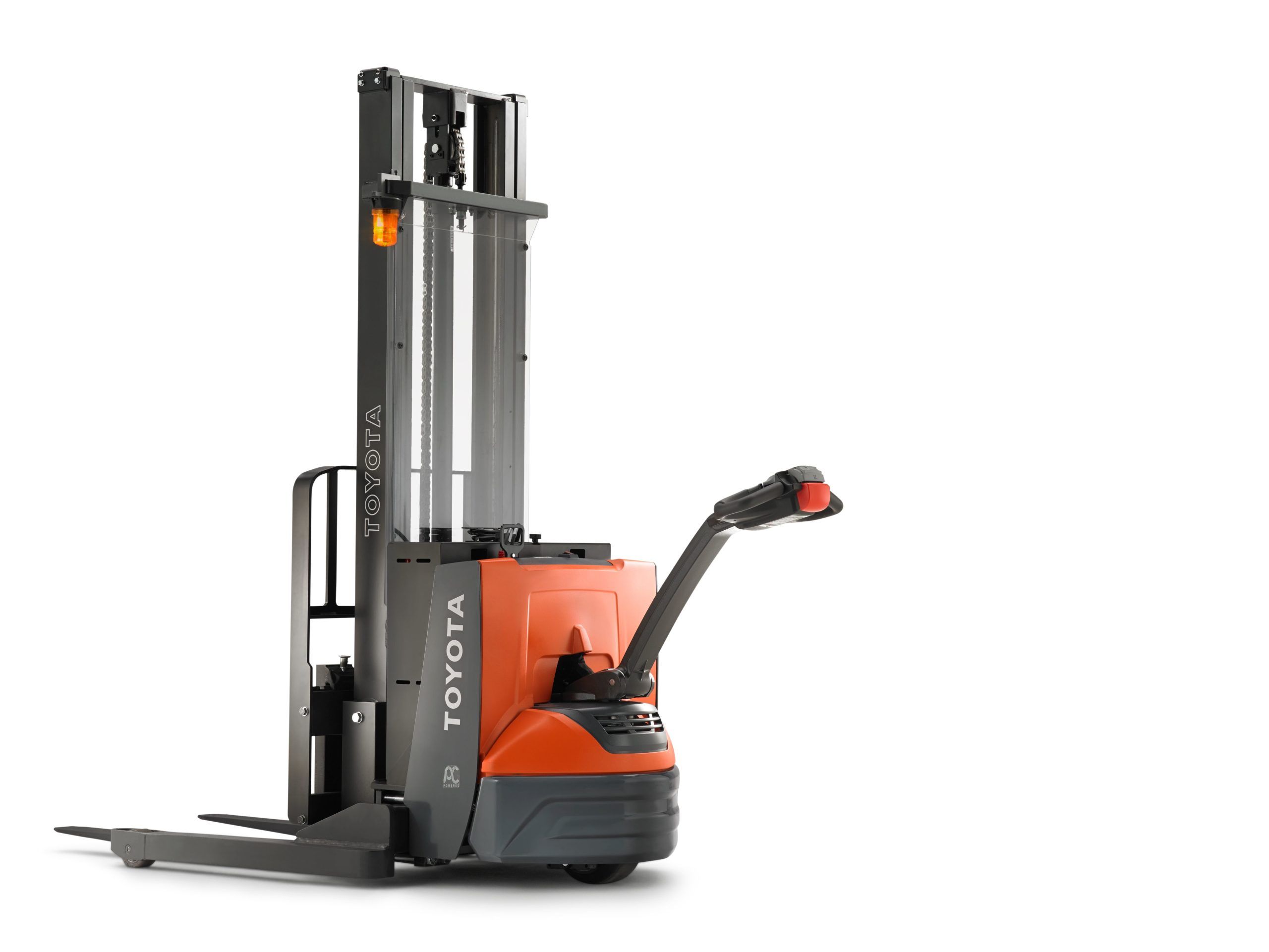 The Toyota Walkie Stacker is a high-performance, zero emissions stacker with a 24 volt motor. It is IP65 rated and features 360-degrees of quality, durability, reliability and value. It has a one-piece high-strength service cover and an error indicator with self-diagnostics.