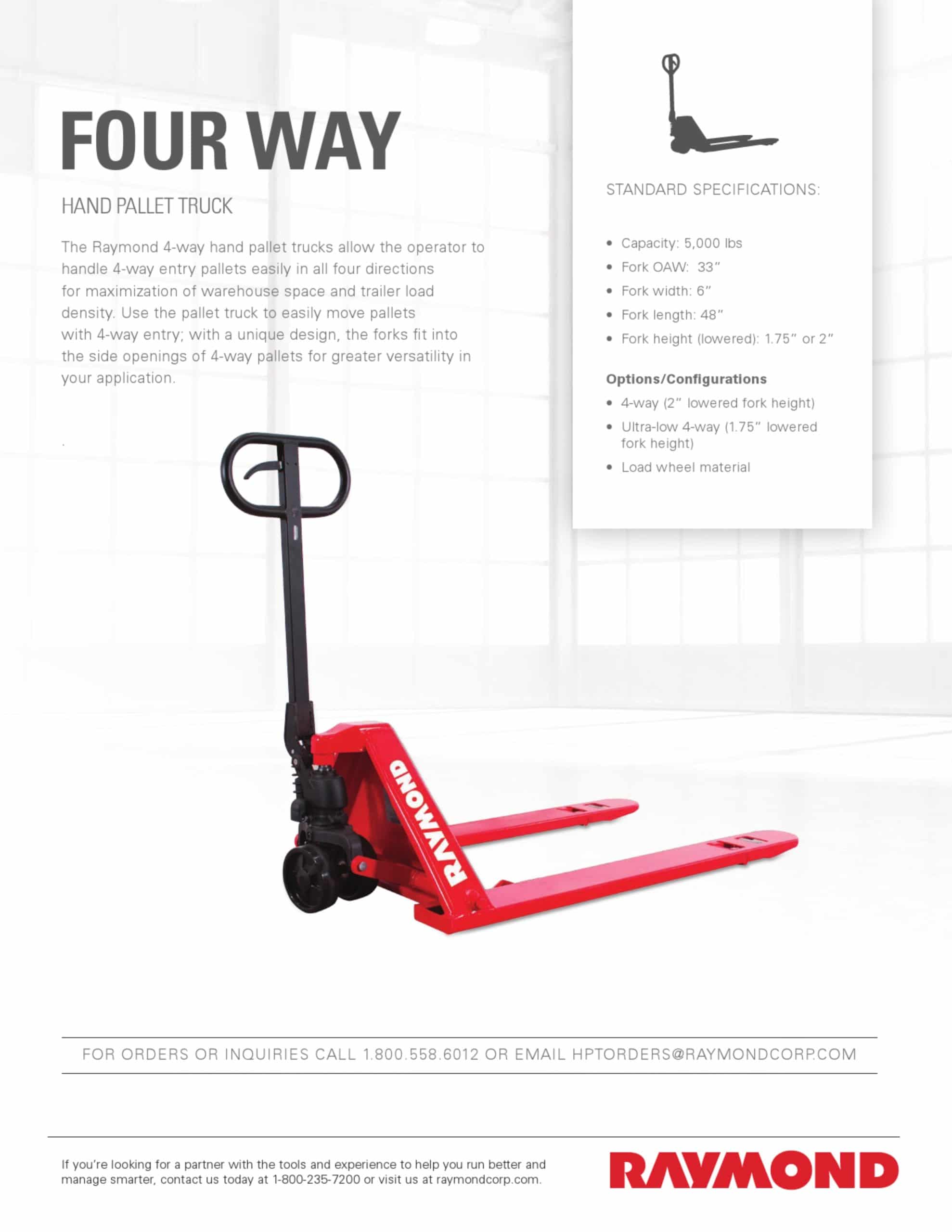 For nearly a century, Raymond has provided material handling solutions to thousands of companies in every major industry segment, resulting in extensive cross-industry experience that is second to none. Weâve led the material handling industry and literally âwritten the bookâ on innovation- from inventing the hydraulic hand pallet truck and the double-faced pallet, to revolutionizing the warehouse with the narrow aisle, and developing the breakthrough lift trucks that help your operations achieve their full potential. Raymond and its authorized Sales and Service Centers work to serve you with consistent effort, enthusiasm and high quality. Our profit-boosting advice, proactive maintenance, fast service response, technical proficiency and comprehensive training ensures you get everything you need, everywhere you do business. Whether youâre a local, regional, multi-location or national account customer, expect performance solutions tailored to your needs, including world-class programs for fleet management and optimization, consistent maintenance and service with response-time assurance, technician and operator training, and much more.