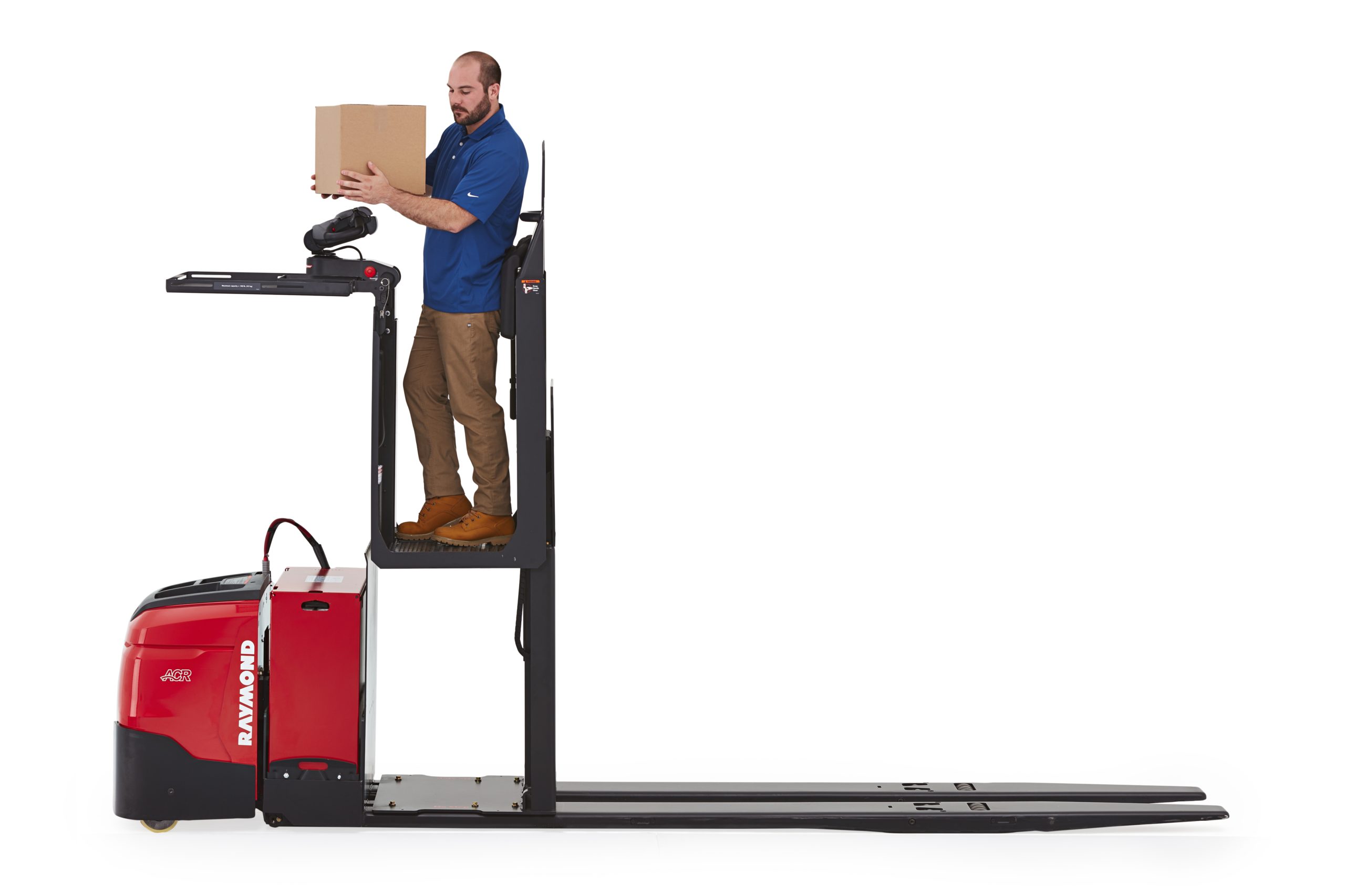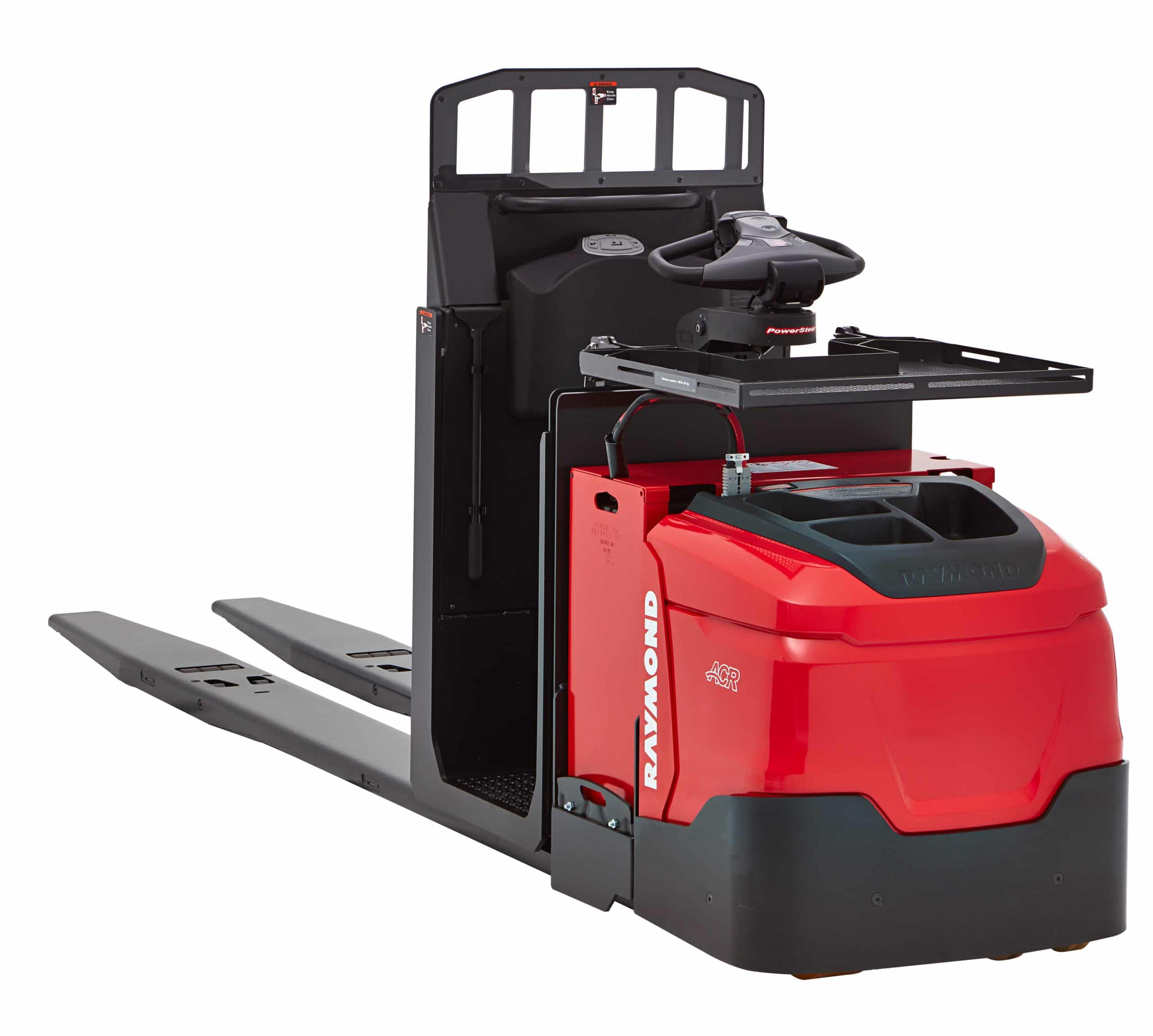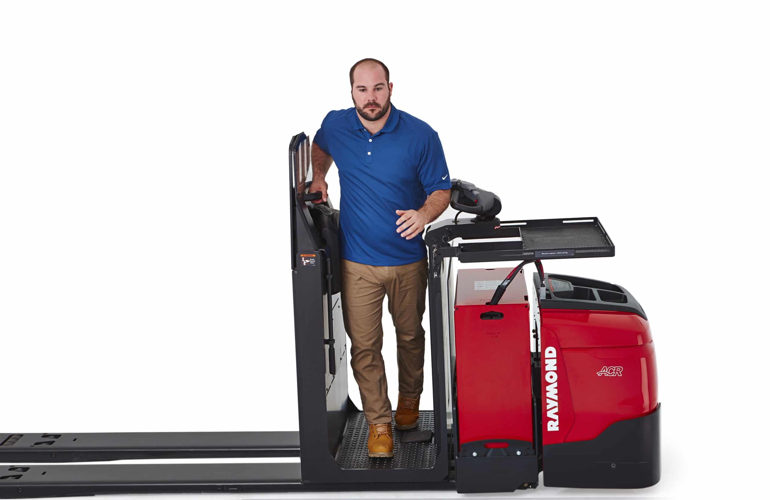 Cold Storage Conditioning Package Protects sensitive lift truck controls systems with hydraulic, mechanical, and electrical components that are matched to different temperature levels to assure peak performance and productivity.s. Pick2Pallet LED Light System Increase picking accuracy with the Pick2Pallet⢠LED Light System. Offered exclusively by Raymond, Pick2Pallet is designed to help reduce picking errors by using LED technology to visually reinforce product placement for order fulfillment in batch picking applications. Hands Free Lowering Hands-free lowering allows the operator to lower the compartment without having to set cases down. The operator can activate lowering the compartment through a foot pedal, centered on the floor of the compartment, for faster more flexible order picking. Pick Rake Designed to give order selectors greater reach and superior stability, Raymondâs unique pick rake offers faster, easier access to higher SKUâs and items toward the back of a pallet. By minimizing awkward reaching, stretching and leaning, the pick rake allows operators to work more comfortably, confidently and productively. Storage Tray A large and sturdy storage tray provides a convenient method to place picked product without having to lower the compartment between picks. Travel at Height Travel at height enables the operator to travel from pick-to-pick while the compartment is elevated â avoiding the need of having to lower and lift again between picks for faster, more efficient order picking. Rear Control Easily accessed on the operator backrest, and ergonomically contoured to enhance operator productivity when traveling in the forks first direction. Operator Compartment Sensor System (OCSS) The Operator Compartment Sensor System (OCSS) helps reinforce the need for operators to assume and maintain a proper operating position. Different configuration settings are available depending on the task at hand. For example, the OCSS will restrict travel if an operator has not assumed the proper riding operating position or is not alternatively configured so that the operator may assume either the order picking position outside of the truck or in the riding position.