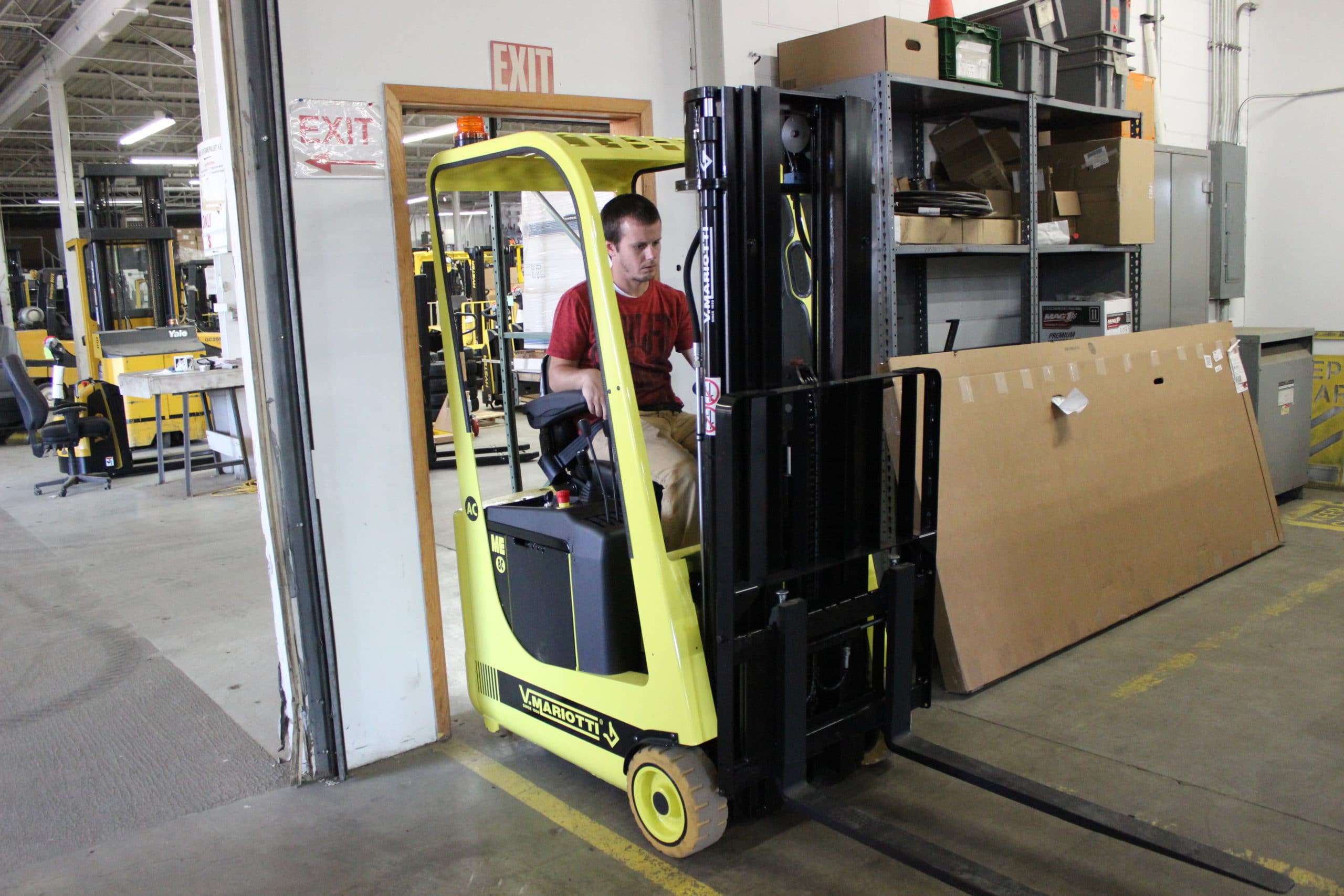 The Mariotti ME Forklift is an economy series forklift that is available in capacities from 1,500 lbs to 2,100 lbs. It has a 24V or 36V operating system and rear wheel drive. Its lift heights can go up to 224″. Many standard features are included.