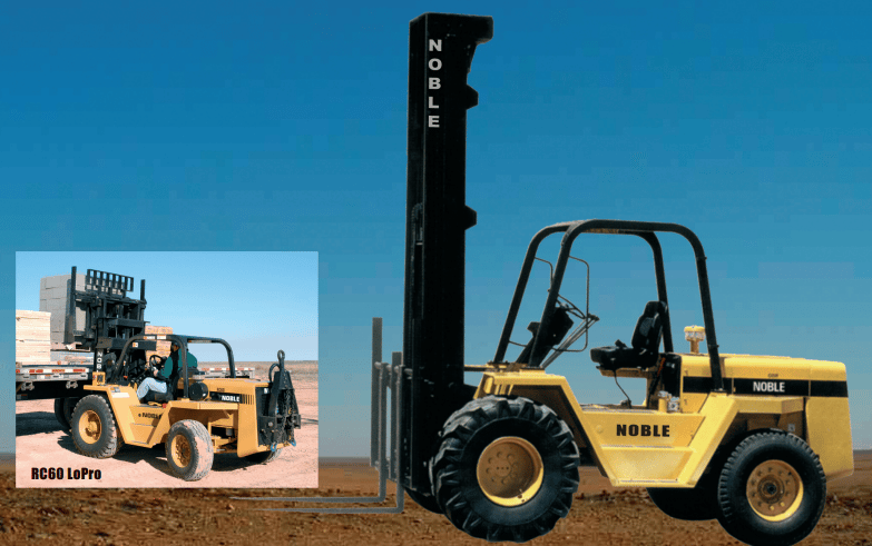 Noble âRâ Series forklifts offer leaf spring suspension with ruggedness and capability that clients have been accustomed to for decades. The âRC60LPâ Series offers compactness and easy maneuverability not normally associated with a true rough terrain forklift.