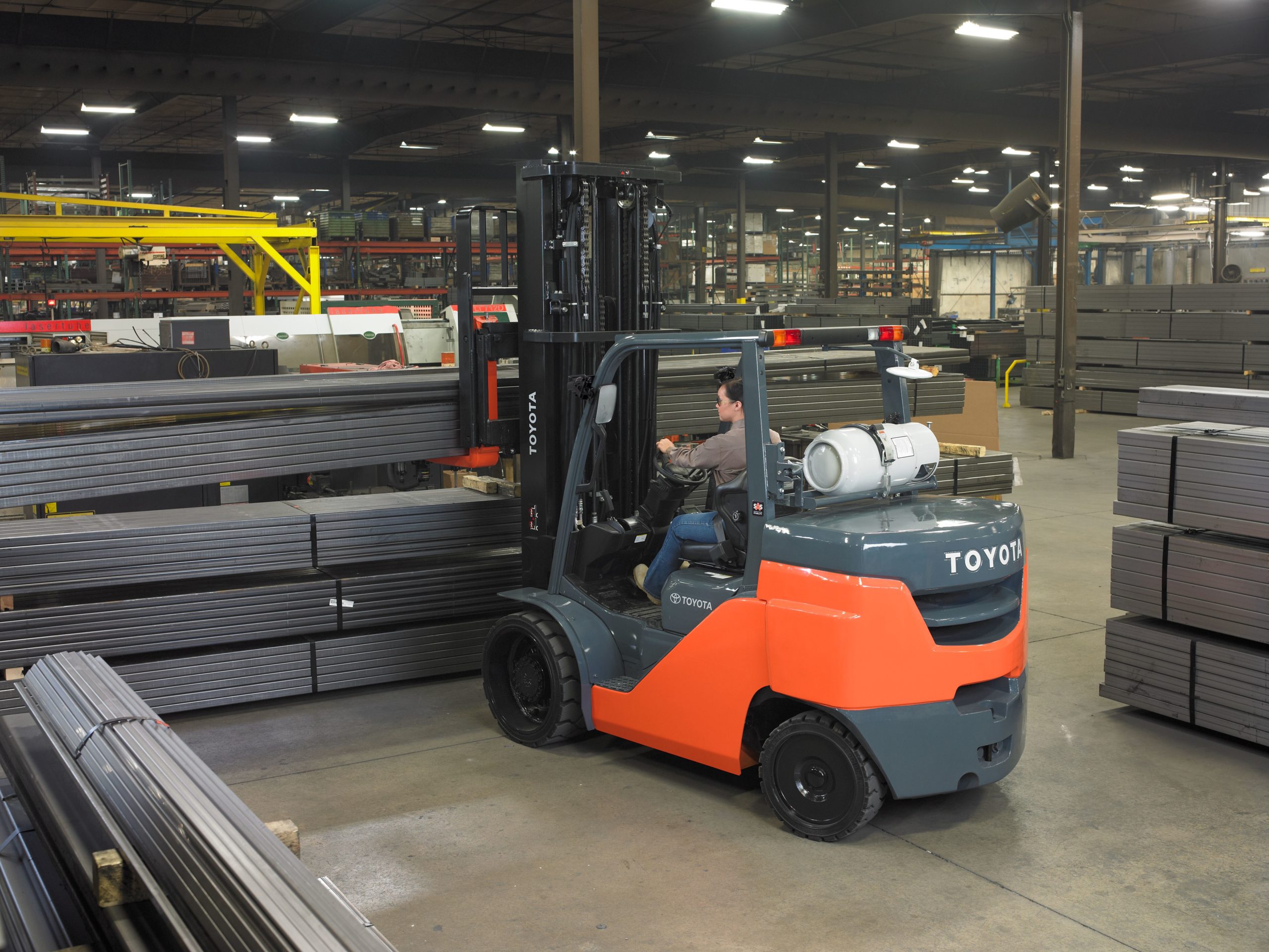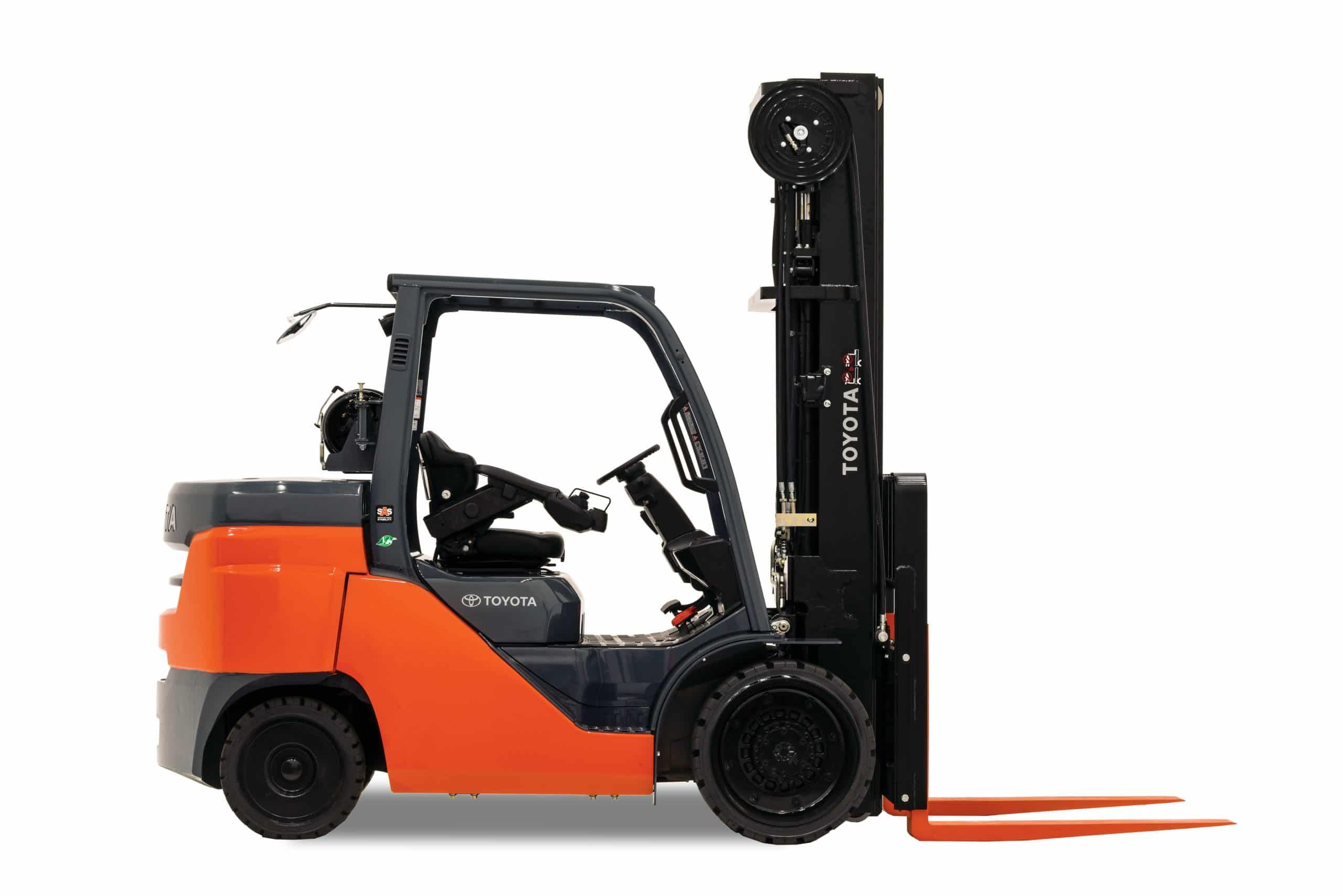 The Toyota Large IC Cushion Forklift is a powerful and reliable option for those in need of a top-quality forklift. With 84 horsepower, a 13 MPH travel speed, and automatic fork leveling, this forklift is sure to get the job done quickly and efficiently. Additionally, the Toyota Large IC Cushion Forklift features a number of safety features, including the System of Active Stability, the Operator Presence Sensing System, and the Bolt-On Overhead Guard, making it a safe and reliable option for those in need of a forklift.