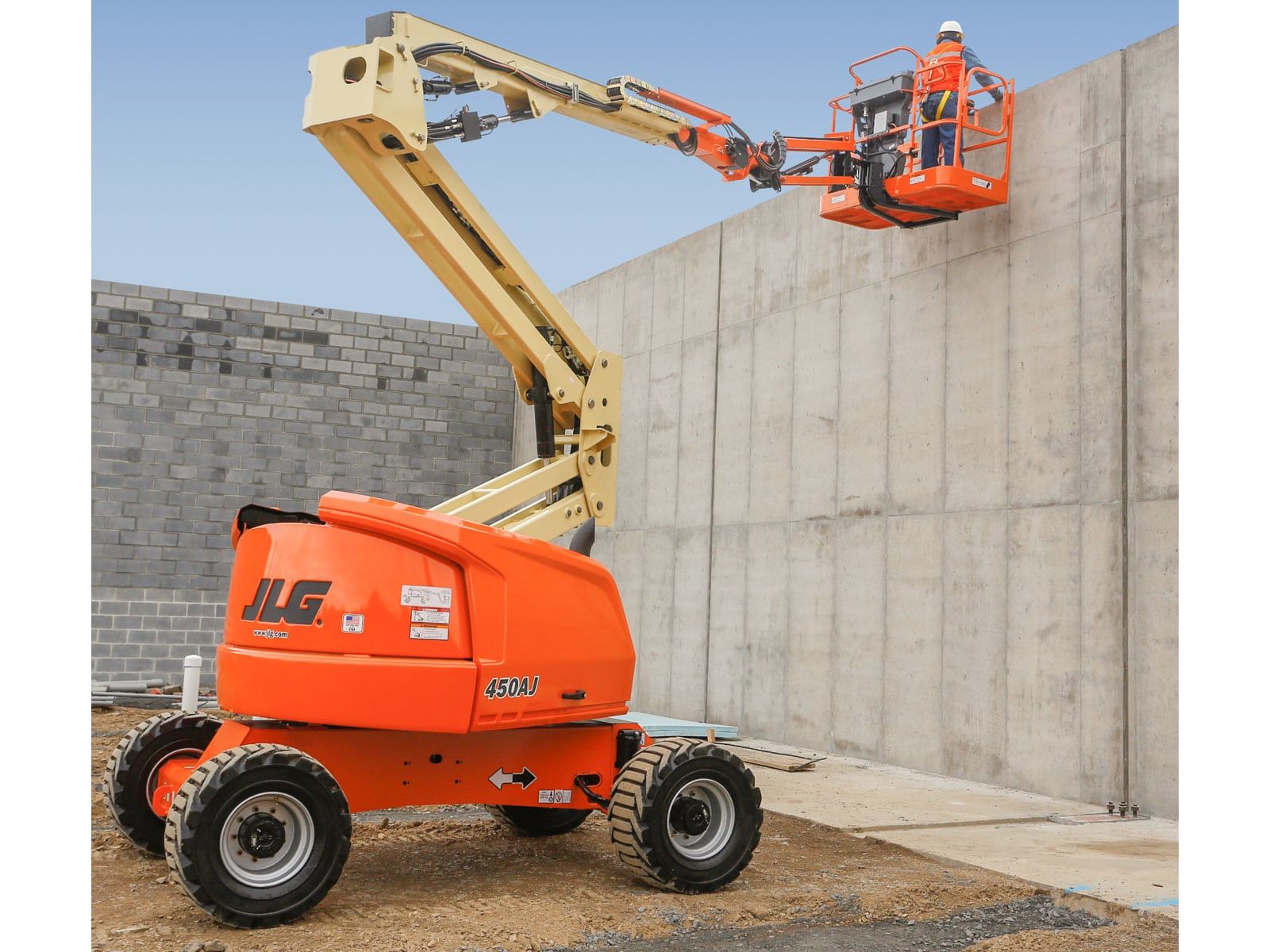 The JLG 450AJ Articulating Boom Lift is a versatile and productive machine that is perfect for a variety of applications. With its improved multifunction capability, it can tackle any job you throw at it, and with its new DuraTough hood design, it is more durable and serviceable than ever before. With a capacity of 550 lb, it can handle even the most challenging projects.