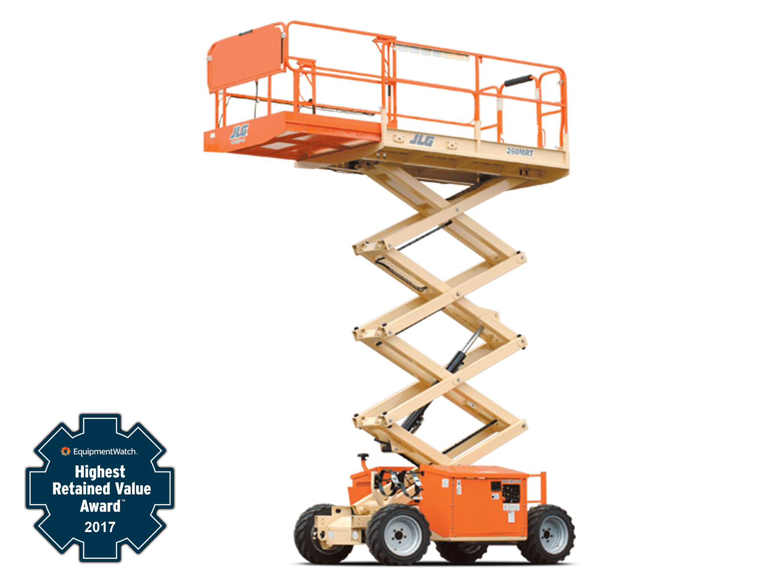 The JLG 260MRT Engine Powered Scissor Lift has a narrow 69 in chassis that fits into spaces other scissor lifts can’t. It also has a large work platform and 1,250 lb platform capacity so you can be more productive. Standard four wheel drive and 35 percent gradeability keep you going.