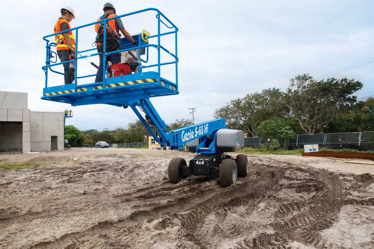 The Genie S-60 HF and S-65 HF high float telescopic boom lift is perfect for getting work done quickly. With a virtual pivot primary boom, 4WD, and positive traction drive, these machines are perfect for any job.