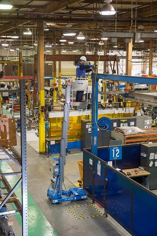 Provides over 2 ft (61 cm) of additional horizontal reach (Genie® IWP®-20S only). Ideal for maneuvering up and over shelves, machinery and equipment (ANSI, CE, AUS only).EXCEPTIONAL STABILITY