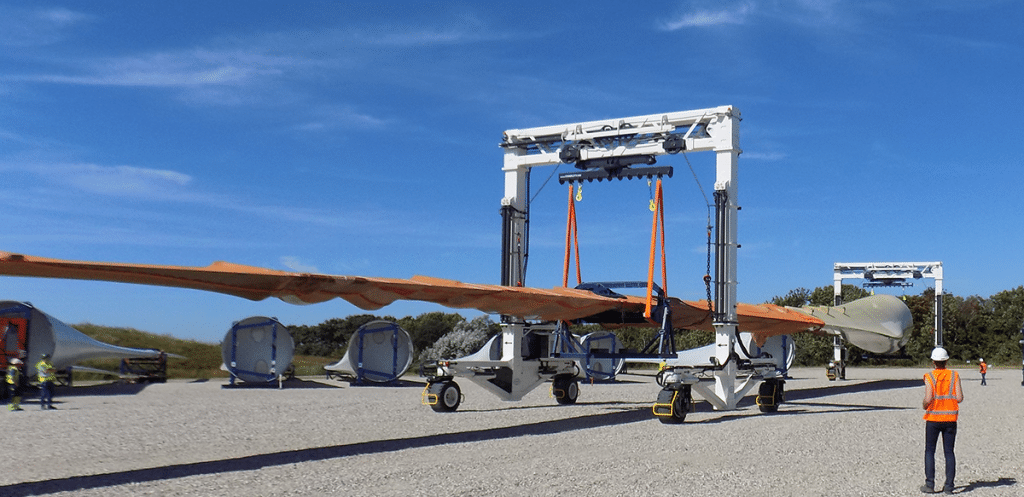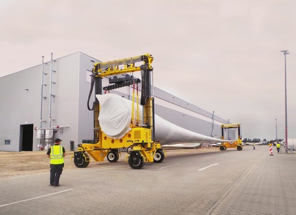 The Combi- MG can be operated in tandem mode enabling the moving of extremely long loads such as wind turbine blades or aerospace components with high levels of control and in the safest manner available.