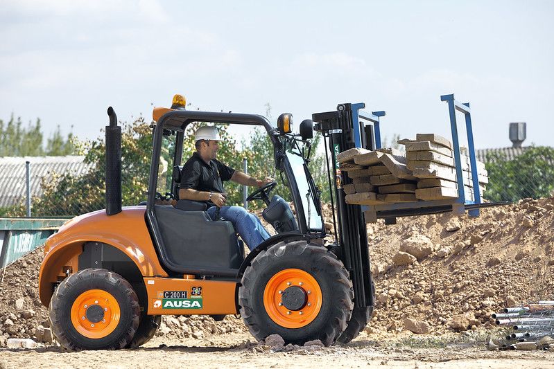 The AUSA C201H FORKLIFT is a versatile and easy to use machine that is perfect for any terrain. With its compact design, it is perfect for maneuvering in tight spaces. The joystick all in one hand control and creep speed pedal make it easy to operate. The tilting cab gives the operator a great view of the work area.